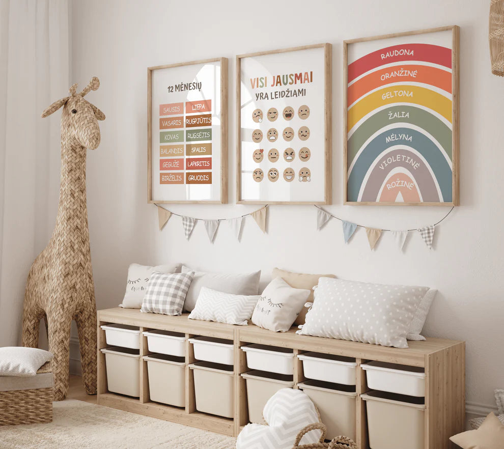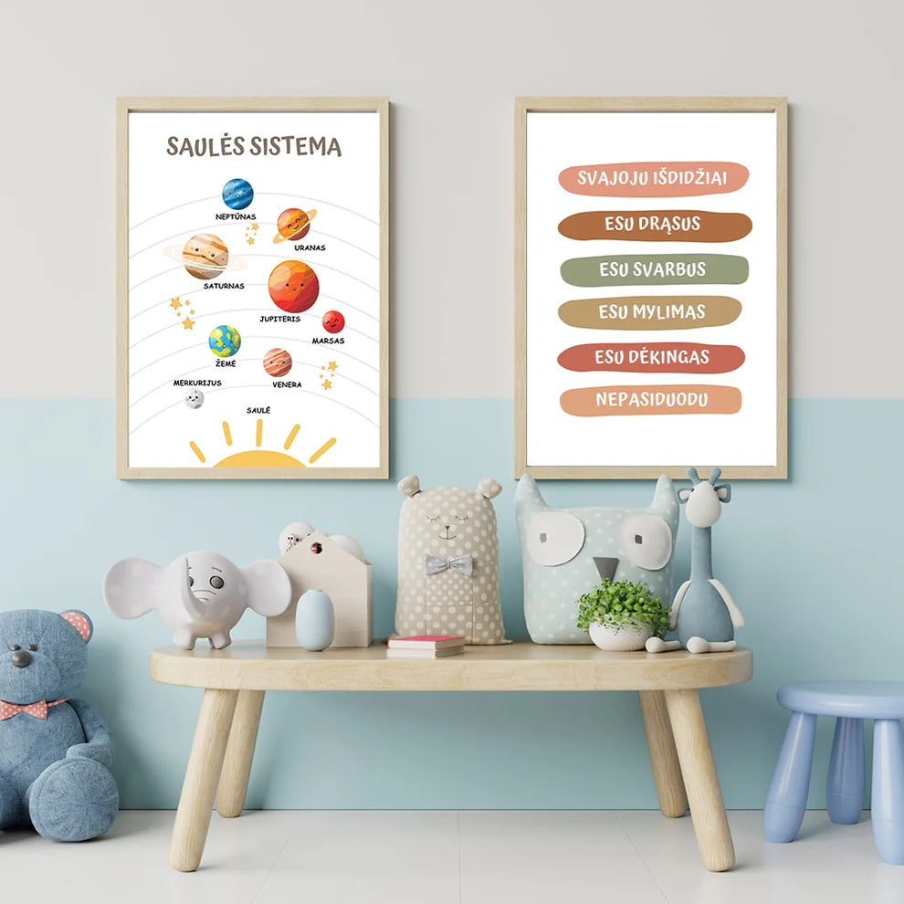 Todėl plakatų naudojimu neturėtų apsiriboti vien klasėje, bet juos REIKIA pakabinti ir vaiko kambaryje.