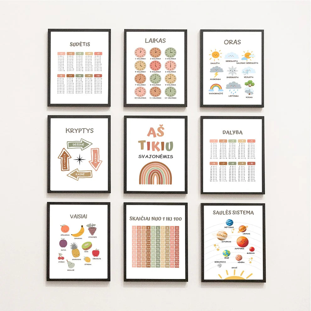 „Super komplektas“ 43 edukaciniai, motyvuojantys ir įkvepiantys plakatai vaiko kambario sienai